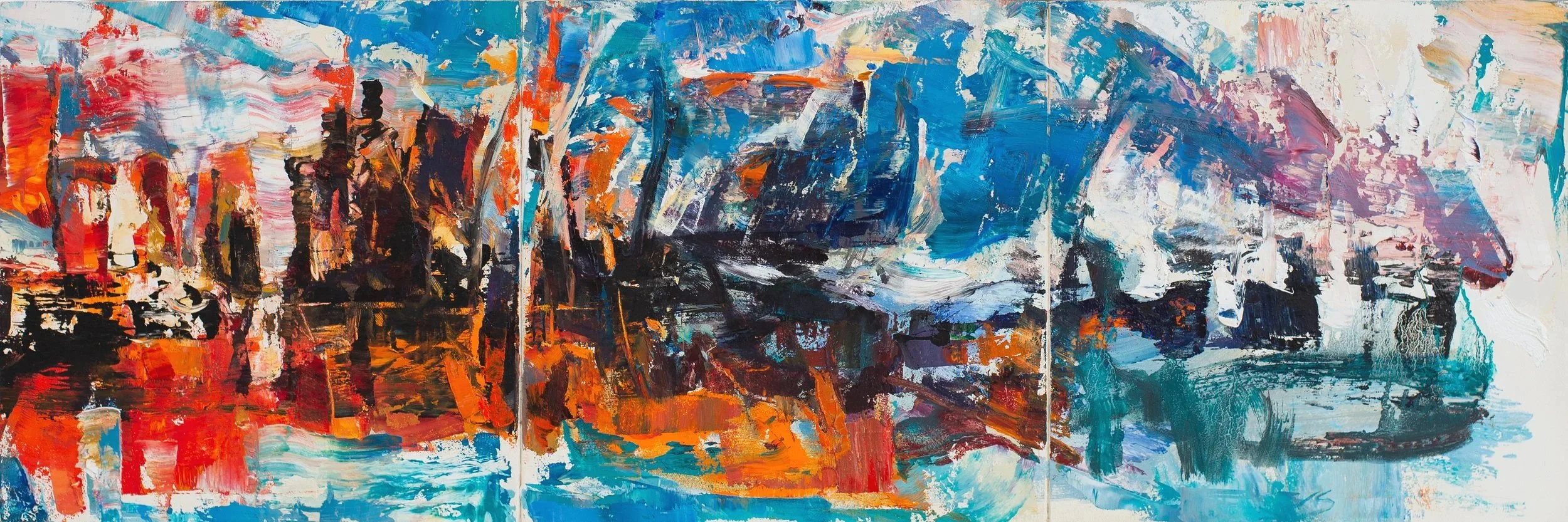 Just beneath representation, recurring themes persist: movement, human transformation, and the cyclical nature of life. As Pablo Neruda wrote, “All paths lead to the same goal: to convey to others what we are.” This remains central to my work. I am drawn to the friction of opposites, where abstraction and figuration, flatness and depth, restraint and intensity coalesce into dynamic narratives – where meaning is not fixed but continually formed.
